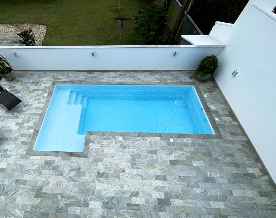 Conheça a Linha Premium com traços retos, com prainha e escada.Podendo ser fabricada nas cores azul e branco nos tamanhos de 3 a 7 metros.